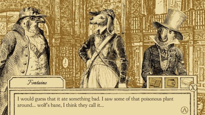 Die feinen Charakterzeichnungen stammen zum Großteil aus der Feder von J. J. Grandville, einem 1803 geborenen Karikaturisten und historischen Zeitzeugen. Entwickler Sketchy Logic hat sich dieser kleinen Kunstwerke angenommen und drumherum eine spannende Kriminalgeschichte gesponnen. Die Optik ist stimmig, passenderweise wirkt alles wie alte Tuschezeichnungen. Auch wenn Ihr manchmal Orte durchsuchen oder auf einer Karte entscheiden könnt, wohin Ihr gehen möchtet, so ist Aviary Attorney doch eindeutig eine Visual Novel, die ihre fesselnde Geschichte in Standbildern erzählt. Je nachdem, wie Ihr Euch an einem wichtigen Punkt der Geschichte entscheidet, könnt Ihr drei vollkommen andere Enden erleben, dank komfortabler Levelauswahl auch ohne das Spiel noch einmal durchspielen zu müssen. Die Geschichte ist spannend und gut erzählt, die Charaktere überzeugen, zudem steckt viel Witz im Spiel.