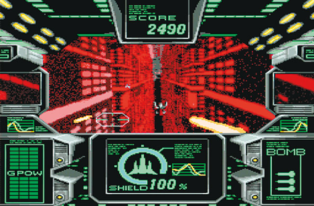 In subjektiver Perspektive blickt Ihr aus dem Cockpit Eures Raumkreuzers, der sich in zehn Level mit Laserwaffen und Smart-Bombs gegen Sternenzerstörer, schnelle Jäger und Flug-Roboter zur Wehr setzt.