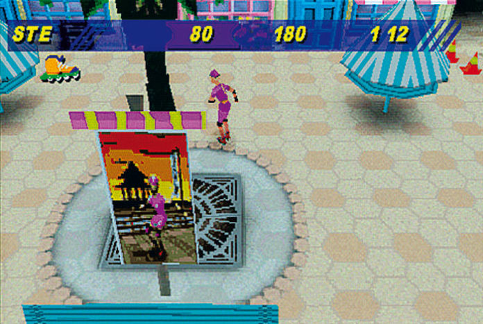 Jeweils ein Trainingsparcours und vier Kurse stehen für (laut Hand­­buch bzw. Sprach­ausgabe) ‘coole’ Stunts bereit. Durch Auf­sammeln goldener Tickets oder Um­fahren von Schnee­männern verdient Ihr Punkte, blaue Tickets sackt Ihr für die nächste Shop­ping-Tour ein. Klingt simpel, steuert sich noch primitiver: Laufen die Tricks nicht gerade von alleine ab, genügt ein Tastendruck zur rechten Zeit.