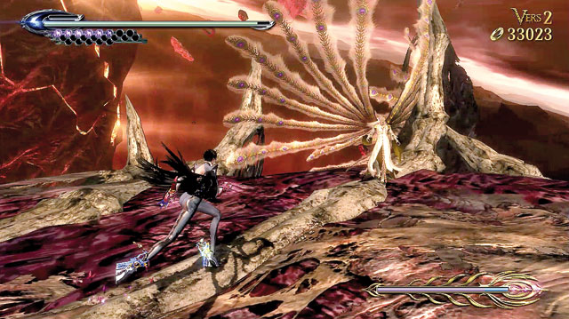 Neben kleinen Sprungpassagen und zahllosen Arenafights haben die Entwickler etliche Over-the-Top-Actioneinlagen eingebaut: Mal surft Bayonetta minutenlang durch eine Megawelle, mal duelliert sie sich im Weltall mit Himmelstitanen oder reitet auf einem Feuerross durch die Hölle. Spielerisch sind diese Abschnitte oft von zweifelhafter Qualität, hier stand eindeutig die kurzweilige