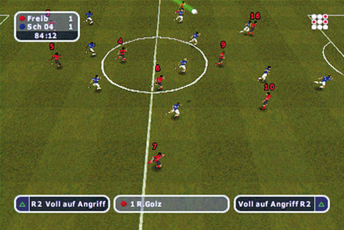 So wählt Ihr also Euren Lieblingsverein aus der aktuellen 1. bzw. 2. Bundesliga sowie vier englischen Divisionen und stellt Euch als Manager bzw. Trainer Aufgaben wie ‘Abstieg verhindern’ oder ‘Für Europa qualifizieren’. Habt Ihr keine Lust, ständig zwischen Dreistreifer und Zweireiher zu wechseln, übernehmt Ihr gleich zu Beginn das gesamte Vereinspersonal: Der Geschäftsführer kümmert sich um Sponsoren und Stadionausbau, Euer Assistent betreut die Jugendmannschaft und bearbeitet Spielerverträge. Sogar Training und ärztliche Entscheidungen dürft Ihr an die CPU-gesteuerten Helferlein abschieben – nichtsdestotrotz führt Ihr das Zepter und könnt jederzeit wieder die Kontrolle übernehmen. Euer eigentliches Interesse gilt aber den Spielern: Im Kaderbildschirm werden die Mannen samt ihrer Attribute unter die Lupe genommen und zu einem schlagkräftigen Team geformt, das Taktikmenü dient der Aufstellung sowie der Verteilung von Sonderrollen wie Elfmeterschütze oder Spielmacher. Zudem justiert Ihr grundlegendes Verhalten: Sollen die Jungs auf Konter setzen oder lieber langsam das Spiel aufbauen? Wird das Match über die Flügel aufgezogen oder geht’s durch die Mitte? Damit Ihr während einer Begegnung akkurat reagieren könnt, dürft Ihr außerdem auf die Schultertasten Kommandos wie ‘Voller Angriff’ oder ‘Ball halten’ legen.