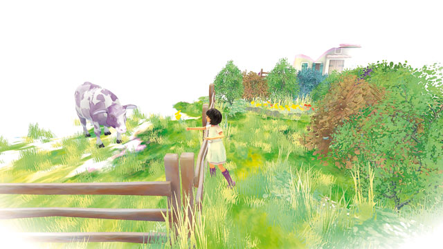 Mit blassen, charmanten Wasserfarben malt Beyond Eyes seine Spielwelt – wenn die blinde Rae von Euch im Schritttempo vorwärts geführt wird, schälen sich bunte Kulissen aus dem weißen Nichts. Ein interessanter Ansatz, um eine Sehbehinderung grafisch in einem Videospiel umzusetzen. Cool auch: Zwitschert etwas entfernt ein Vogel, flackert kurz eine bunte ”Sound-Insel” auf.