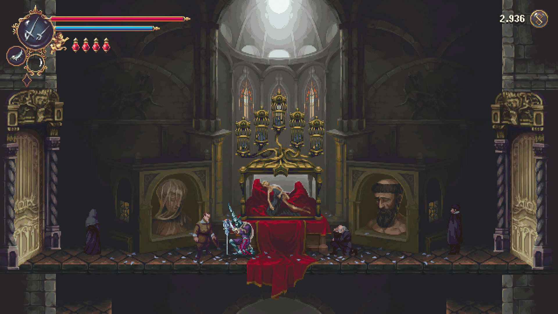 Oliver Schultes meint: Im Test des ersten Teils zückte ich dicke 85 Spielspaßpunkte, wünschte mir aber gleichzeitig ”eine genauere Karte, auf der man Markierungen setzen kann, und mehr Schnellreisepunkte, um Laufwege zu reduzieren”. Die Entwickler erhörten meine Büßer-Bitte und merzten diese Kritikpunkte aus. Das Ergebnis: Blasphemous 2 spielt sich jetzt noch fluffiger und flotter, ohne die Stärken zu verlieren. Die vielen anderen kleinen Änderungen (etwa die drei Wafffen mit ihren Special Moves) empfinde ich ebenfalls als sinnvolle Verbesserungen. Dass einige Assets wie die Kerzenständer recycelt werden – geschenkt. Dafür überzeugen die aufwendig-stimmungsvollen Pixel-Landschaften, das clevere Leveldesign mit vielen Abkürzungen, die mal gedämpfte, mal mitreißende Musikuntermalung (Bosskampf gegen die Fechterin!) und die saftigen Soundeffekte. So sehen kompetente Fortsetzungen aus!