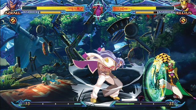 BlazBlue-Veteranen freuen sich über insgesamt 23 spielbare Fighter die bisher größte Auswahl der Seriengeschichte. Das Kampfsystem wurde leichten Veränderungen unterzogen. Special Moves nagen diesmal an einer vierstufigen Leiste. Das Overdrive-System lässt Euren Charakter für etwa fünf Sekunden besonders hart zuschlagen. Crush Trigger bezieht sich auf eine Leiste am oberen Bildrand: Opfert Ihr einen Heat-Balken vom unteren Bildrand, könnt Ihr die Deckung Eures Gegners durchbrechen und ihn wehrlos machen. Weichen mussten dafür Gold Break Bursts sowie Guard Primers aus dem Vorgänger.