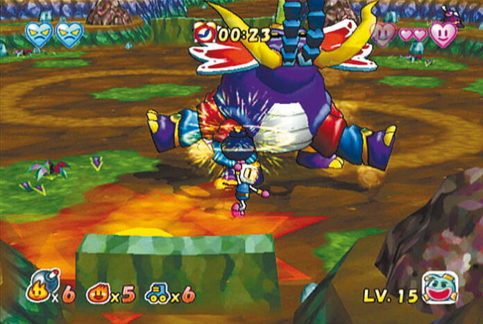 Auch wenn Hudsons simpel-geniale Böllerei mittlerweile mehr als 16 Jahre Bildschirmpräsenz auf dem Buckel hat, scheint die Spielergemeinde einfach nicht genug von den putzigen Bombenmännlein kriegen zu können. Nach einem Dreamcast-Abstecher in Online-Gefilde und einer linkbaren GBA-Episode kehrt der Nippon-Entwickler zu den stationären Serien-Wurzeln zurück – angesagte Cel-Shading-Optik, brandneue Spielvarianten sowie ein (verhältnismäßig) komplexes Solo-Abenteuer im Gepäck.