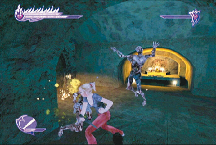 In typischer 3D-Action-Adventure-Manier steuert Ihr Buffy durch meist düstere Szenarien und nehmt es mit einer Monster-Übermacht auf: Egal, ob bekannte Schauplätze wie die Sunnydale High School, der Bronze Club und Angels einsame Villa, oder schummrige Gänge in unterirdischen Verliesen und versunkenen Kathedralen, die Jägerin setzt sich überall gekonnt mit Hand und Fuß zur Wehr. Während die gewöhnlichen Fieslinge nach genug Prügeln ihr Lebenslicht aushauchen, benötigt Ihr für Vampire etwas mehr Einsatz: Bekanntlich geben die untoten Sauger erst klein bei, wenn Ihr sie pfählt, anzündet oder köpft – frischt also regelmäßig Eure Pflockvorräte auf und haltet Armbrüste, Sichelmesser oder Feuer werfende Spritzpistolen vorrätig.
