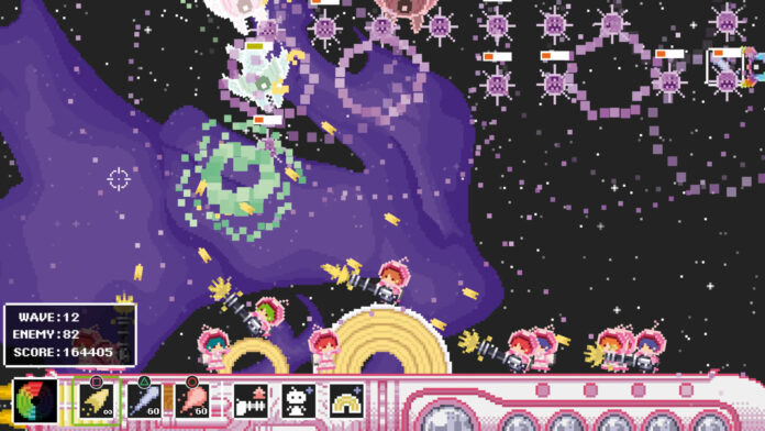 Da schau her: Die ZOO Corporation kann auch etwas anderes als ­Arcade-Oldies oder Gesellschaftsspiele mit üppigen Anime-Mädels aufzupimpen. Diesmal spendieren sie uns nämlich eine putzig in Szene gesetzte Pixel-Ballerei, bei der Ihr Baumkuchenringe vor anrauschenden Alienwellen verteidigt: Eure Heldin steht dabei fix in der Mitte am unteren Bildrand, Ihr steuert ein Fadenkreuz und lasst endlose Projektilsalven auf die Feinde los.