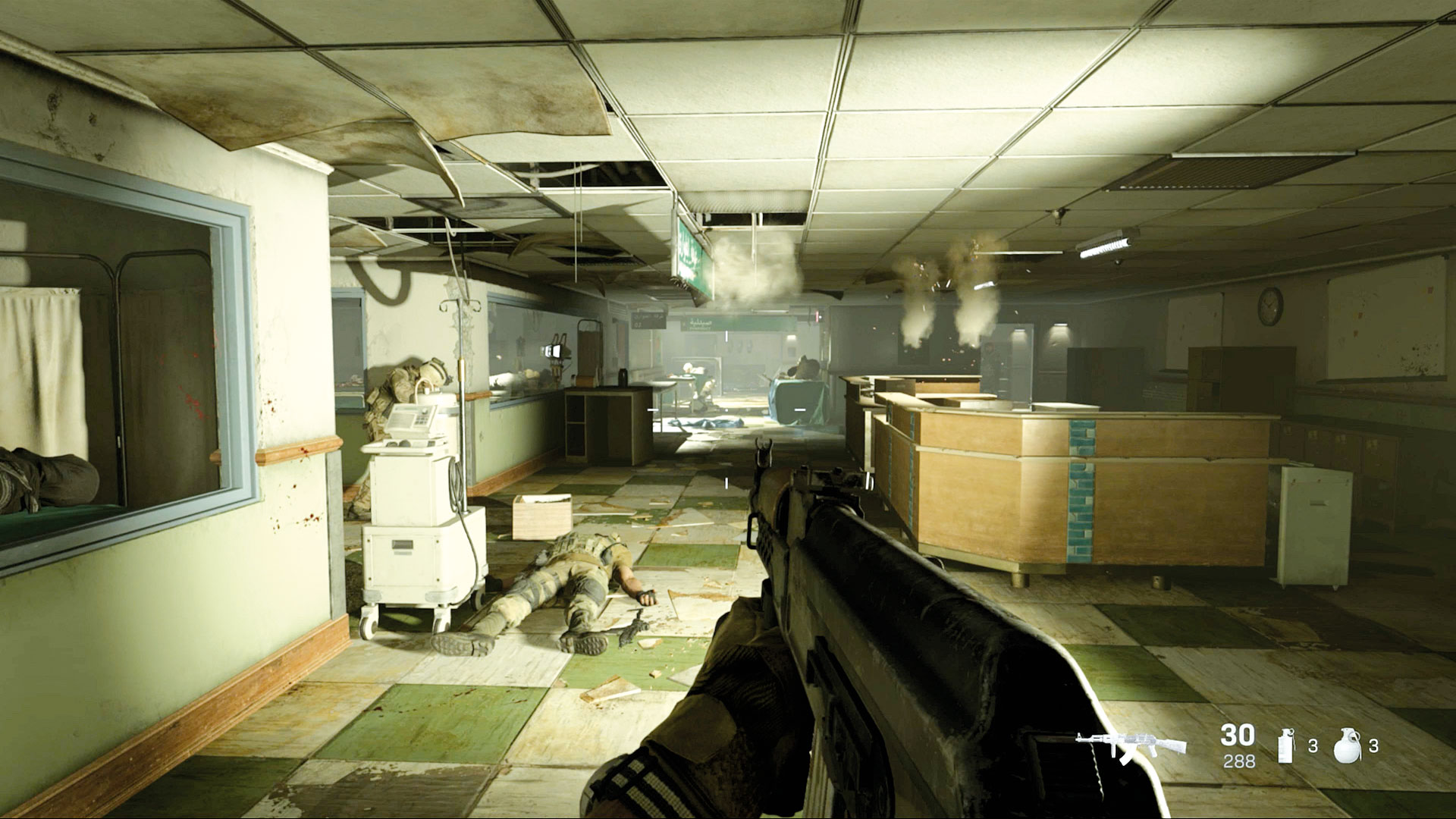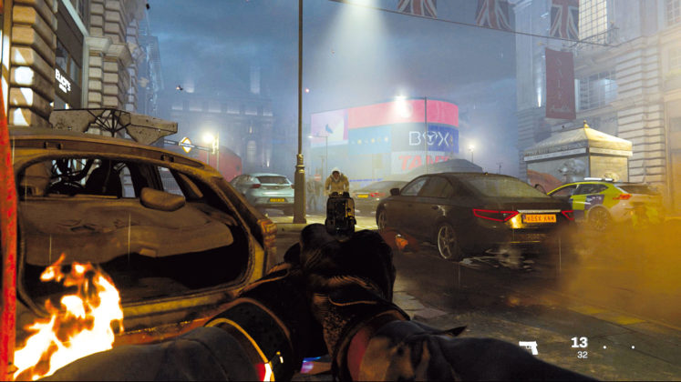 Die Kampagne sieht teilweise sehr atmosphärisch aus aber ist auch mehr schlauch als je zuvor. Dann gibt es noch diese “Skandal” Missionen wo man z. B. ein kleines Mädchen spielt die sich allen ernstes mit mehreren russischen Soldaten anlegt und am Ende dann weg gekarrt wird. Schicksal unbekannt. Aber vielleicht hab ich auch was verpasst. Die letzten drei Missionen hab ich ohne Ton gespielt und Podcast laufen lassen weil mir das alles so egal war. Auch das Water Boarding löst null Emotion aus. Da war sogar GTA5 in dieser Folter Mission besser. Auf den höheren Schwierigkeitsgraden muss man die Gegner Positionen auswendig lernen und Trial & Error vor gehen da die Gegner automatisch hinter der Ecke wissen wo man steckt und sofort schießen. Du siehst den Gegner und bist auch schon rot, vor allem wenn er eine Shotgun hat. Das ist so mega frustrierend und man hat keine Chance durch Geschick oder Taktik erfolgreich zu sein. Darüber hinaus fehlen Höhepunkte. Der Einstieg in London ist sehr gut inszeniert. Danach gibt es nur noch kleinere Höhepunkte wenn man mal einen Luftschlag beobachtet oder Gegner sich durch ein Feld abschleichen und man sie nur sieht wenn man eine Leucht Rakete abschiesst. Ansonsten gibt es nur die übliche Baller Bude und keine großen, inszenierten, highlights. Da war ich mega enttäuscht.
