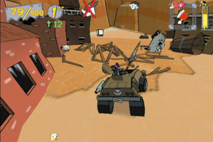 Im Rahmen einer skurrilen Fern­sehserie sollt Ihr mit mehr oder weniger humorig designten Fahr­zeugen durch schlappe vier Sze­na­rien brettern und Euren Kontra­henten mit allen möglichen Waf­fen eins vor den Latz geben. Aller­dings ist es auch schon egal, ob Ihr Granaten, Äxte oder Bomben sammelt, am Spielablauf selber ändert das wenig: Chaotisches Rum­gesause wechselt sich mit regel­mäßigem jähen Ableben ab, gegen das Ihr dank völlig verbocktem Radar kaum was ausrichten könnt. Für minimale Abwechslung würden zwei modifizierte Aufgabenstellungen sorgen, wenn die nicht prompt noch frustrierender ausfallen würden.
