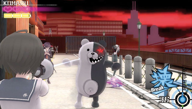 Ihr übernehmt die Rolle der titelgebenden Ultra Despair Girls: Komaru Naegi (Schwester des Helden aus Teil 1) ist mit einer kuriosen Megaphon-Wumme unterwegs, die unterschiedliche Arten von Truth Bullets abfeuert. Mit denen piesackt Ihr angreifende Monokuma-Roboteddys oder Ihr bekommt eine Patronenzahl für gelegentlich eingestreute Rätselabschnitte vorgeschrieben. Auf Knopfdruck kommt für kurze Zeiträume die zweite Heldin Toku Fukama (samt Killer-Alter-Ego Genocide Jack) zum Einsatz, die auf scharfe Klingen und Nahkampfgeschnetzel setzt.