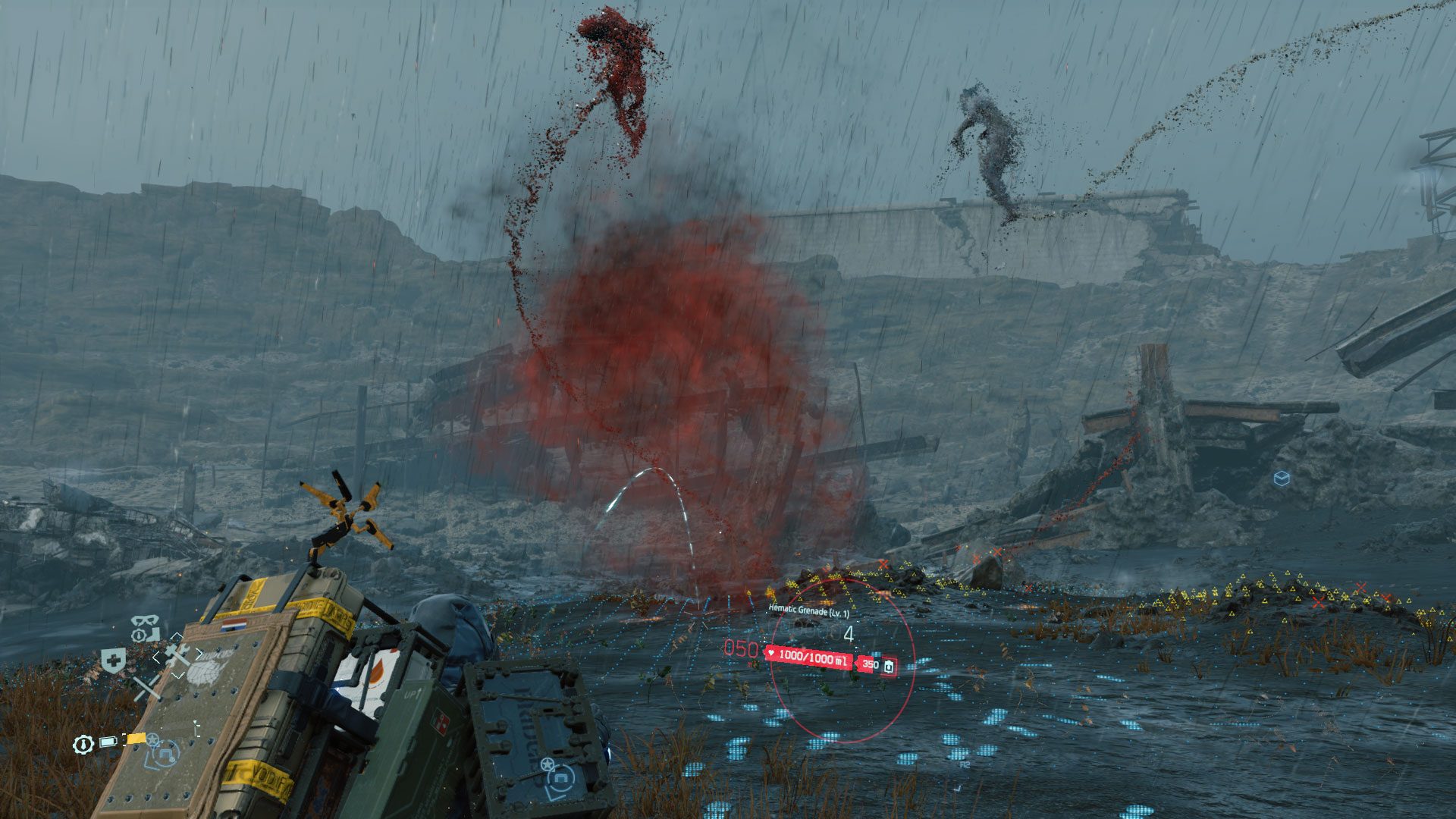 Anfangs begegnet Sam ihnen mit bloßen Fäusten, später mit Bola-Gewehr, Strick und nicht-tödlichen Gewehren. Ein Leichnam würde schließlich einen der eingangs erwähnten Leerestürze auslösen: eine gigantische Explosion, die einen Kilometer großen Krater in die eh schon karge Landschaft sprengen und dort alles Restleben auslöschen würde. Spielerisch anspruchsvoll gestaltet sich das nicht, die simplen Schleich- und Ballermechaniken fallen konventionell aus, selbst größere Gruppen lassen sich mitunter im Faustkampf besiegen. Gebiete mit dem zweiten Feindtypus, den GDs, kündigen sich stets an durch schwarzen Regen. Hier ist gebücktes Schleichen geboten, mitunter auch Luftanhalten, erst mit der Zeit erlernt Sam aggressivere Methoden.