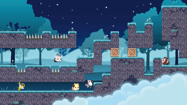 Niedliches Knobel-Hüpfen verheißen die Dreamals: Ihr steuert drei Tiere, die jeweils nur eine Laufrichtung beherrschen und bei Kontakt fusionieren. Dermaßen limitiert, müsst Ihr erst einen Schlüssel sammeln und danach den Ausgang erreichen. Ein wenig erinnert das Konzept an Soko-Ban und ist eigentlich ganz gewitzt, wirkt aber stellenweise undurchdacht und lässt Feinpolitur vermissen: So fühlen sich insbesondere Sprünge steif an und die Steuerung hakt gerne mal. Das ist unglücklich, denn schon eine Bewegung zu viel kann die Lösung verbauen und einen Level-Neustart erfordern, weil unverständlicherweise keine Rückspul-Funktion vorhanden ist – je komplexer die Aufgaben werden, umso frustrierender wirkt sich das auf Dauer aus.