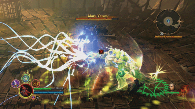 Obwohl das labyrinthartige Fantasieland zahlreiche Welten beherbergt, ist das Abenteuer recht übersichtlich aufgebaut: Selbst Siedlungen bestehen nur aus einer Hauptstraße mit wenigen Sackgassen am Rande. Durch jeden Schauplatz führen eine Haupt- und eine erplauderbare Nebenquest, die Euch jeweils mehrere Aufgaben stellen per Tastendruck blendet Ihr Wegpunkte ein, die Euch die Richtung zum nächsten Ziel weisen. Befreit Gefangene, bergt Schlüsselitems und räumt natürlich gefährliche Obermotze wie Riesenspinne und Dämonenwächter aus dem Weg. Dazu nutzt Ihr zwei Kampfmodi bzw. Waffensets: Der Ritter etwa kann mit Schwert und Schild taktisch kämpfen oder mit dem Zweihänder rabiat in die Menge holzen. Mit wachsender Erfahrung lernt Ihr neun Fähigkeiten, die sich mit Sondereffekten individuell entwickeln lassen. So könnt Ihr etwa den Schildzauber mit Schutzboni erweitern, ihm aber auch Reflektoreigenschaften verleihen. Dann wird ein Teil des Schadens auf den Angreifer zurück geworfen. In der Offensive nutzt Ihr Sturmattacken, Rundumschläge und Zaubergeschosse, die Ihr mit Effekten wie Zeitbremse oder Energiediebstahl erweitern dürft. Da es keine Heilitems gibt, ist zunächst der Ausbau von Regenerationstalenten ratsam man kann lediglich von besiegten Feinden heilende Orbs sammeln.