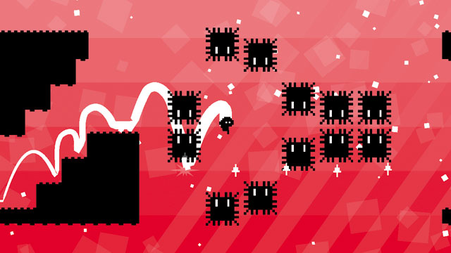 Eigentlich ist das Spiel simpel: Eure kleine Figur muss von links nach rechts 2D-Levels voller Abgründe und Fallen meistern – und kann nur hüpfen und stampfen. Per Hopser überwindet Ihr (Überraschung!) tödliche Tiefen, per Stampfer macht Ihr Feinde oder zielsuchende Raketen platt. Ein weißer Schweif hinter Eurer Figur zeigt Euren Weg an (gut zu sehen im roten Bild) – das ist praktisch, damit Ihr wisst, wo Ihr falsch abgesprungen seid und es beim nächsten Versuch besser machen könnt. Und Ihr werdet viele Versuche brauchen – das Rücksetzen zu (fair verteilten) Checkpoints wird zu Eurem täglichen Brot, während Ihr Euch Stück um Stück vorankämpft. Von beatlastiger Techno-Musik eingepeitscht, erlebt Ihr Irrwitziges: Die Schwerkraft ändert sich, das Bild wird gedreht, Ihr rutscht über Eisflächen, beginnt zu fliegen und trefft auf fiese Bosse. Noch härtere Bonus-Levels, eine kleine Zusatz-Episode und ein Endlos-Modus runden den famosen Hüpfer ab.