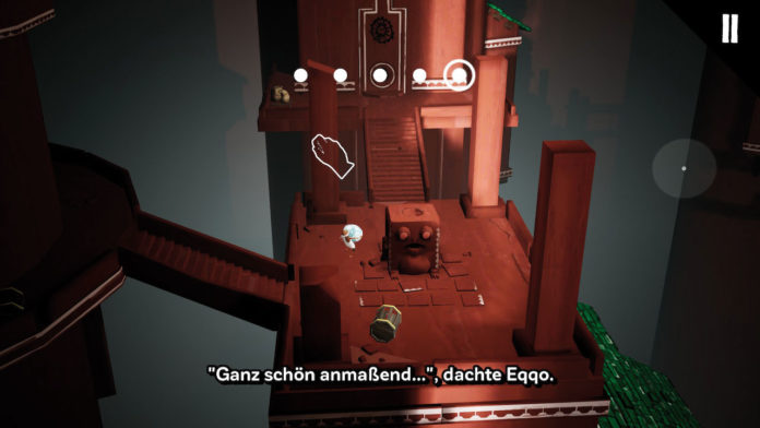 Die Touchsteuerung fühlt sich natürlicher an als das umständliche Dirigieren via Stick-Cursor – Eqqo stammt eben aus dem Mobile-Sektor. Während Ihr Eqqo durch die Umgebung schickt, aktiviert er kleine Mechanismen, die Euch erlauben, Hebel umzulegen, Räder zu drehen oder an Ketten zu ziehen. Die gestellten Aufgaben sind zu simpel, um sie als Rätsel zu bezeichnen – und wiederholen sich leider oft. Auch bleibt Euch der kleine Held während des Spiels seltsam fremd, da Ihr die gesamte Erzählung durch die Worte der Mutter erfahrt. Ihre schöne und angenehme Stimme bleibt das einzige Sound-Highlight des Spiels, das sich sonst durch eine ungewöhnlich gedämpfte Geräuschkulisse auszeichnet. Schade, wäre doch bei einem Spiel mit einem blinden Protagonisten der Einsatz von Akustik besonders interessant.