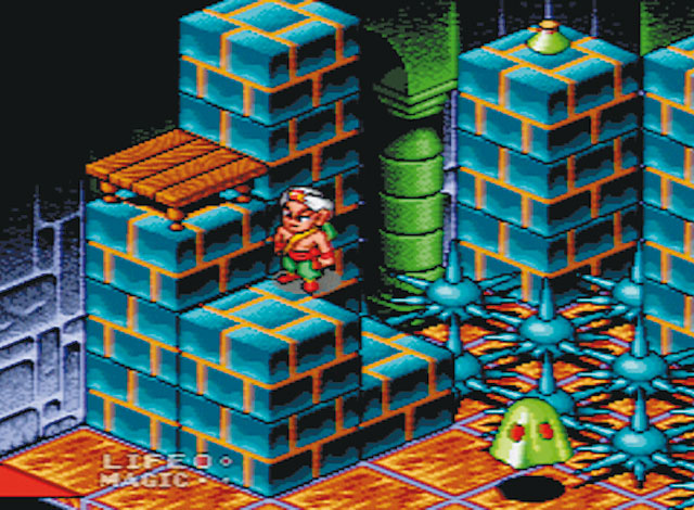 Schande über mich, habe Equinox verkauft und mein Landstalker-Modul liegt seit vielen, vielen Jahren unbespielt in der Retrokiste rum…Die Snes Knobelei habe ich unterhaltsam in Erinnerung, meine aber, mich stets über die hakelige Steuerung beschwert zu haben. Ob sie der Grund war, warum ich das Game für einige ( damals nicht so viele) D-Münzen wieder im Umlauf brachte? Mhmmm…. 😉