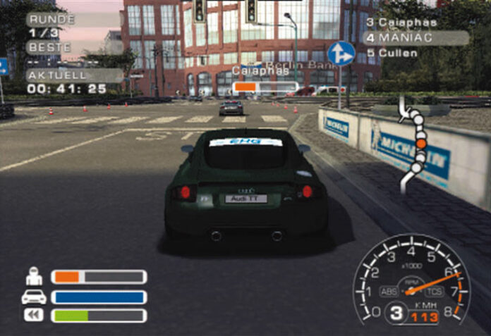 Auf der Piste schlagt Ihr Euch mit sieben Konkurrenten herum: Sitzen diese Euch lange im Nacken, leidet die Konzentration des Fahrers und Euch ereilt schon mal ein durch Verwischeffekte visualisierter Aussetzer. Zum Glück beherrscht aber auch Ihr den ‘Tiger-Effekt‘, durch den Ihr auf Knopfdruck die Zeit etwas zurückdrehen und damit im Idealfall gemachte Fehler ausbügeln könnt.
