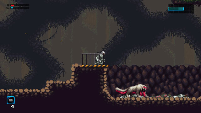 Eigentlich hätte es ein Routineeinsatz werden sollen: Mit seinen Gefährten sieht Soldat Jameson auf einem Minenplaneten nach dem Rechten. Doch es kommt anders, und so findet Ihr Euch alleine in einer feindseligen Welt wieder. In 2D-Seitenansicht sucht Ihr nach Euren Kameraden, was allerdings nicht so einfach ist: Zu Beginn von Exile’s End müsst Ihr nicht nur auf Waffen, sondern auch auf viele moderne Annehmlichkeiten verzichten: Stürze aus zu großer Höhe zehren empfindlich an der Lebensenergie und den ersten Gegnern stellt Ihr Euch nur mit einer Handvoll Wurfsteine. Doch mit der Zeit rüstet Ihr im besten Metroidvania-Stil auf: Mit neuen Waffen und Talenten wie dem obligatorischen Doppelsprung erschließt Ihr nach und nach immer größere Teile der Karte. Eure Lebensenergie füllt Ihr mit eher seltenen Medikits auf oder hofft, dass ein besiegter Gegner ein entsprechendes Objekt fallen lässt – gespeichert wird automatisch, wenn Ihr ein Areal betretet. Das kann zu unangenehmen Überraschungen führen, gerade wenn Ihr mal wieder mit minimaler Lebensenergie herumkrebst oder aus Versehen ein Medikit verbraucht. Grafisch setzt Exile’s End auf Pixel: In der Standardeinstellung ist die Grafik knackscharf, zwei Filteroptionen versuchen, den Look alter Röhrenfernseher zu emulieren, wirken aber zu unscharf und matschig. Auch bei der Führung gibt sich das Abenteuer sparsam. Zwar seht Ihr auf Knopfdruck die typische Metroid-Karte auf dem Bildschirm, wichtige Punkte oder Ziele werden aber nicht markiert. Dafür holt sich das Spiel Inspiration bei Abenteuer-Plattformern wie Another World oder Flashback: Die scheint dann in Gegneranimationen und Zwischensequenzen, aber auch beim gelegentlichen, kaum vorhersehbaren Ableben Eures Protagonisten durch.