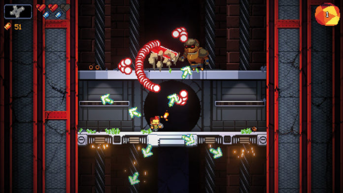 Das rüttelt auch das Spielprinzip ordentlich durch: Statt wie vorher von oben betrachtete Kerker zu bewältigen, seht Ihr das Geschehen nun von der Seite und es wird in den meist bildschirmbreiten, aber auch mal scrollenden Räumen fleißig gehüpft. Wobei ”hüpfen” relativ ist: Die bekannte Ausweichrolle, während der Ihr unverletzbar seid, funktioniert hier nun kurzerhand auch in vertikale Richtungen. So versucht Ihr, mehr oder weniger zufälligen Angreifern und deren Geschossen auszuweichen und sie gleichzeitig wegzuballern, Geld zu sammeln und weit genug zu kommen, um neue Items freizuschalten, die im nächsten Durchgang auftauchen können. Weil das nicht gemein genug ist, haben sich die Macher noch einen besonderen Kniff einfallen lassen: Regelmäßig verwandelt sich Eure Wumme, ohne dass Ihr wisst, ob die nächste Form etwas taugen wird – nur durch effizientes Ballern lässt sich die Chance auf eine durchschlagendere Form erhöhen.