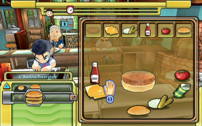 Helft dem Anime-Pärchen Megumi und Ken bei ihrer Restaurant-Eröffnung. Doch statt edler Speisen serviert Ihr den ungeduldigen Gästen Heißes und Fettiges. Schnelligkeit und Multitasking-­Fähigkeiten sind Trumpf in Fast Food Panic. Eintreffende Kunden wollen per Remote-Schwung oder Stylus-Tipper begrüßt (und später verabschiedet) sowie zügig bedient werden – ansonsten verlassen sie wütend das Lokal und Euer Punktezähler schrumpft. Burger und Sushi sind die ersten beiden Gerichte auf Eurer Speisekarte, mit jedem weiteren Story-Kapitel wächst die Auswahl. Jede Fast-Food-Speise besteht aus mehreren ­Kochschritten: Holt beispielsweise für Sushi Reis aus einem Topf, formt diesen und belegt die Reisbällchen mit der gewünschten Fischsorte. Achtet bei den Nudeln auf die Temperatur und lasst das Steak nicht zu lange in der Pfanne. Ihr jongliert dabei mit bis zu fünf Menüs gleichzeitig, was schnelle Reaktionen und Übersicht verlangt.