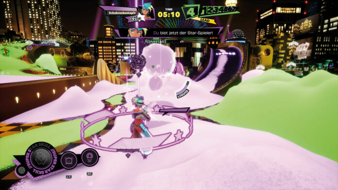 Mit Splatoon schuf Nintendo den Präzedenzfall, dass Multiplayer-Shooter auch ohne scharfe Munition und martialische Ästhetik Erfolg haben können. Allzu viele andere Entwickler hat die tintenfischige Erfolgsgeschichte bisher noch nicht inspiriert – nur das kaugummibasierte Ninjala sorgte dank Free-to-Play-Zugriff für etwas Aufmerksamkeit. Umso erfreulicher, dass sich jetzt auch Square Enix an einem bunten, fröhlichen und angenehm unblutigen Spektakel versucht. In Foamstars treten die Spieler online in Teams gegeneinander an und füllen die glänzenden Arenen von Bath Vegas mit massenweise farbenfrohem Schaum. Ihr füllt so nicht nur die Umgebung, sondern schließt auch Eure Gegner in Blubberblasen ein, um sie dann aus der Arena zu katapultieren – außer einer seiner Kumpanen kommt ihm vorher zu Hilfe. Diverse Modi stehen zur Auswahl: In ”Smash the Star” wird der stärkste Spieler des bislang unterlegenen Teams zum ordentlich gebufften Superstar und Ziel der gegnerischen Truppe. Gelingt es ihnen, den Superstar zu erlegen, bedeutet das den Sieg. In ”Happy Bath Survival” teilen sich die Teams in jeweils zwei Mitglieder innerhalb und außerhalb der Arena auf und in ”Rubber Duck Party” geht es darum, die überdimensionale Gummiente zum Ziel zu bringen. Ein Tanz auf dem Vieh sorgt für einen Extraboost. Wer dagegen lieber solo schäumt, der stürzt sich in den Missionsmodus und wehrt Wellen von Gegnern ab, aber auch hier dürft Ihr wahlweise online im Team antreten.
