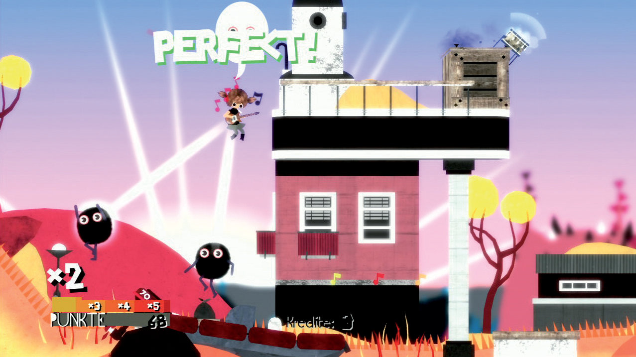 Missglücktes Experiment, ein Jump’n’Run mit Gitarrensteuerung zu koppeln.