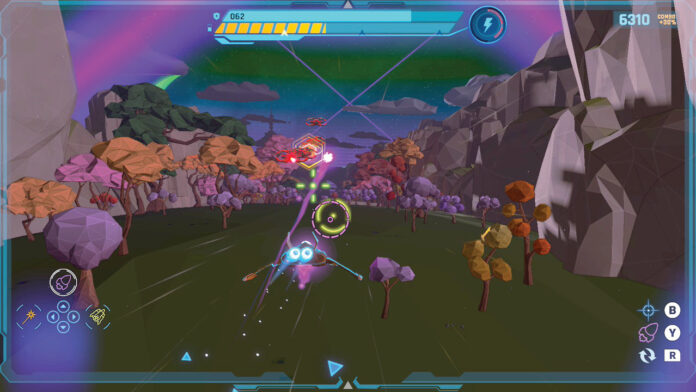 Mit dem nach und nach stärker aufrüstbaren Raumschiff fliegt Ihr durch abwechslungsreiche, stets flüssig bleibende Low-Poly-Szenarien. Steuerung und Waffenarsenal sind unkompliziert und schnell verinnerlicht. Zwar ist die Übersicht nicht immer ideal, was gerade bei Bossen am meisten auffällt, aber das bremst den Actionspaß kaum.