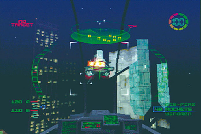 So fühlt Ihr Euch nicht im Einsatz­zen­trum, sondern im Cockpit des High­tech-Helikopters am wohlsten. Mit einem Tastendruck wechselt Ihr zwischen Bordkanone, unterschiedlichen Raketen­systemen und (auf die aktuelle Mission zugeschnittenem) Hilfs­equip­ment wie z.B. Spezial-Scanner oder Elektro­schocker, die jedes Vehikel zum Stehen bringen.