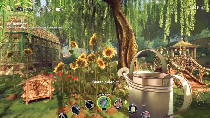 Nachdem die gute Seele der Gemeinde ins Gras beißen musste, liegt es an Euch, ihren einstigen Vorzeigegarten wieder auf Vordermann zu bringen. Habt Ihr die Grünflächen fürs Erste vom Unkraut befreit, fischt Ihr auch schon bald die ers­ten Aufträge der Dorfbewohner aus Eurem Briefkasten. Ob nun eine Hochzeitsfeier der Anlass ist oder doch ein Straßenfest, spielt keine Rolle: Fast immer geht es nur darum, eine gewisse Anzahl von Schnittblumen abzuliefern. Wo genau Ihr die gewünschte ­Sorte anpflanzt, bleibt Euch überlassen. Sonderlich viel Platz bietet die Anlage dafür allerdings nicht.