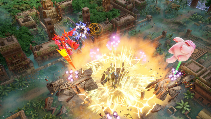 Bis zu vier Kaiju-Kreaturen, die sichtlich von japanischen Ikonen inspiriert sind, steigen in eine aus erhöhter, quasi-isometrischer Perspektive abgefilmte Arena und verkloppen sich dabei kräftig, Kollateralschäden in der Umgebung sind natürlich mit einkalkuliert. Das Kampfsystem ist schnell begriffen und vielleicht eine Spur zu schlicht, außerdem wirkt es nicht ganz ausgewogen, da mache Angriffe spürbar stärker oder unhandlich ausfallen. Ein handfestes Problem ist das aber nicht, weil im Krawall das Chaos regiert und das mit überaschend detailverliebter Optik und stabiler Bildrate sauber in Szene gesetzt ist.