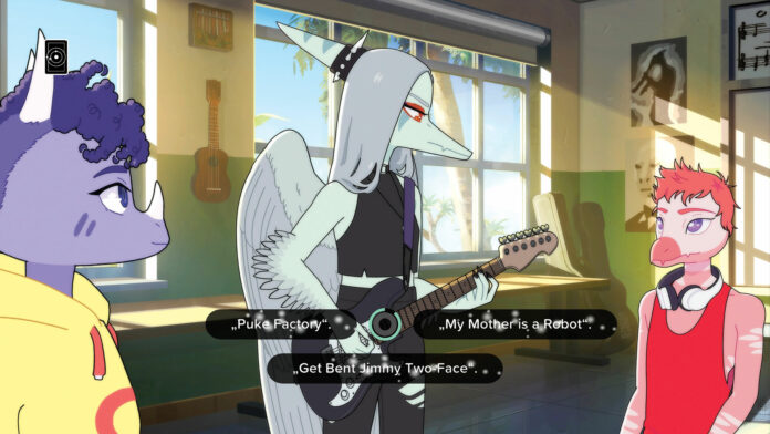 Die meiste Zeit folgt Ihr dabei einem wohltuend unaufgeregten Film und wählt wie bei Telltale-Versoftungen Antwortmöglichkeiten aus, die Eure Beziehungen zu Eurem Freundeskreis mal mehr, mal weniger beeinflussen. Abwechslung gibt es ab und zu durch das Designen Eures Bandposters oder durch die musikalischen Minispiele, die jedoch kaum Rhythmus verlangen und nicht bewältigt werden müssen. Die dazugehörigen Musikvideos sind nur mäßig inszeniert, wodurch Ihr zumindest kaum abgelenkt werdet. Da sich die Geschichte hauptsächlich um dieselben Bandprobleme oder um den drohenden Weltuntergang dreht und Höhepunkte insgesamt Mangelware sind, wirkt die Spiellänge überreizt, wenn Ihr große Spannungsmomente erwartet. Dafür verzichten die Entwickler im Gegenzug auf abgedroschene Klischees wie Raufbolde, Hacker-Nerds und gehässige ­Cheerleader. Die bevorstehende Dino-Apokalypse fühlt sich dadurch angenehm bodenständig an.