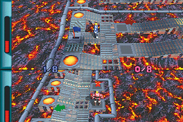 Hilfreiche Extras verlangsamen den feindlichen Alien, mit Minen und Lasern kommt etwas Abwechslung in’s hektische ”Fang’ mich”-Tagesgeschäft. Zudem können sich die Gladiatoren mit gesammelter Magie herumteleportieren und stückchenweise Brücken zu isolierten Fahnen-Inseln bauen. Zwei menschliche Spieler nutzen den Split-Screen-Modus, durch einstellbare Handicaps haben auch Greenhorns Siegchancen. Nettes Spiel, aber langfristig öde.