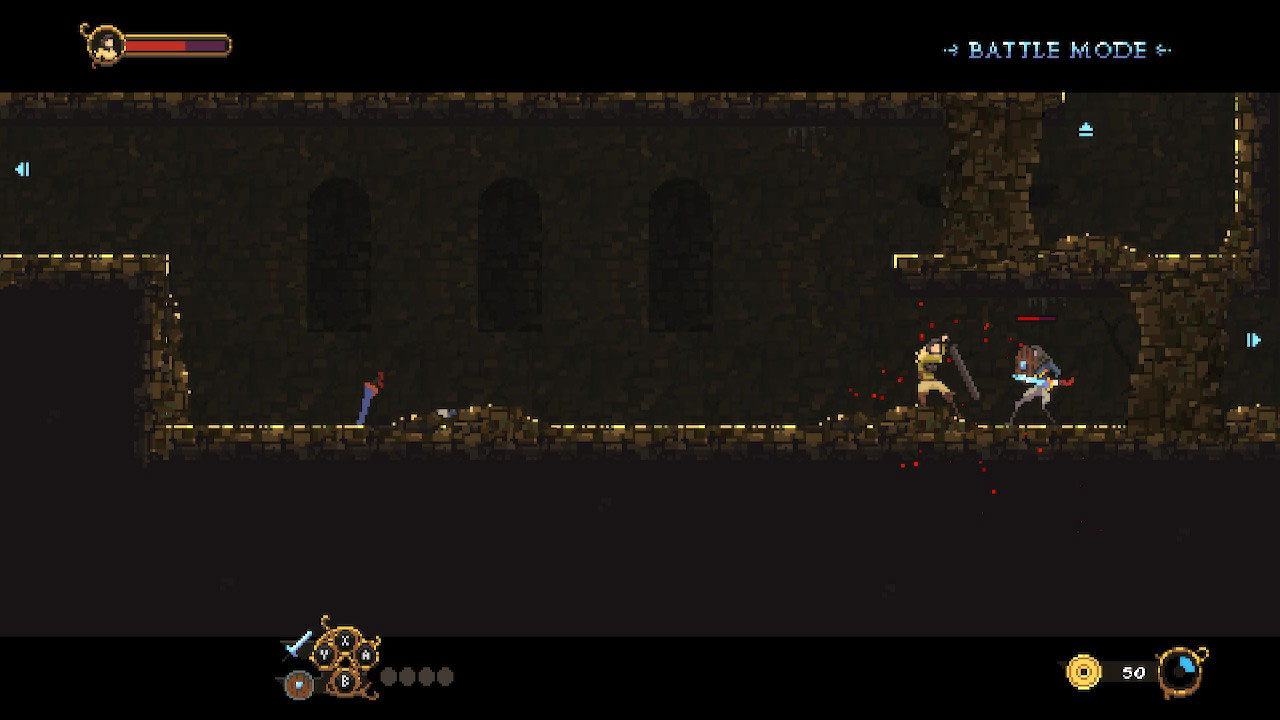 Dank der Darksteel-Rüstung ist Euer ruheloser Held namens Sellsword unsterblich und sucht in der Darksteel-Gilde nach dem Sinn des Lebens. Erinnernd an Klassiker wie Flashback bewegt Ihr Euch in 2D durch die scrollenden Höhlen und Untergründe der deprimierenden Dark Fantasy-Stadt Ravenrock.