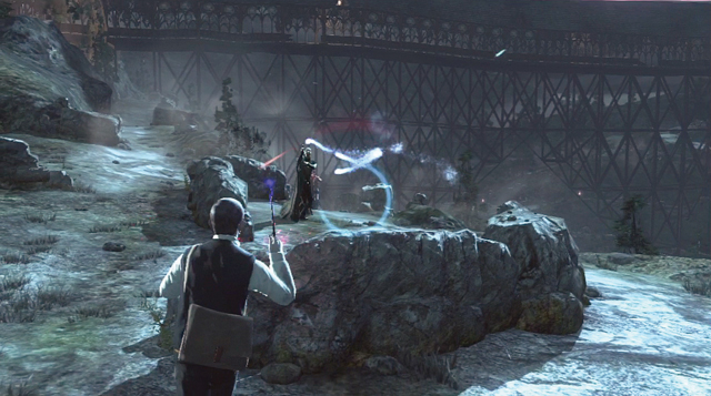 Dabei ist alles vertreten, was man aus anderen Shootern kennt: Mit Scharfschützen-Magie, MG-Zauber, Raketenwerfer-Schuss sowie zielsuchenden Projektilen macht Ihr die Feinde kalt, Protego-Schutzschilde knackt Ihr mit Expelliarmus-Magie. Allein eine Mission, in der Ihr mit Hermine Ron vor Spinnen beschützt, bietet Abwechslung, vor allem weil Ron seltsamerweise der einzige ist, der sich nicht automatisch heilt.