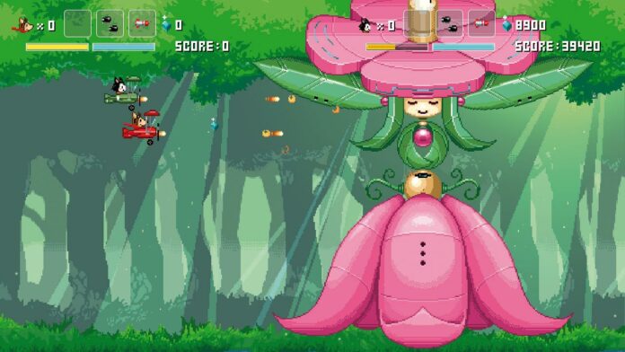 Manchmal dauert es etwas länger: Bereits 2019 erschien das pixelig-niedliche Horizontal-Shoot’em-Up Horgihugh auf PC, im Juni 2021 wurde die tierische Ballerei dann in Japan für die Switch veröffentlicht. Ein Alien-Angriff legt sämtliche Technik einer sich gerade erst von einem großen Krieg erholenden Welt lahm, nur die Flugzeuge von Hund Hugh und seinem Katzenkumpel Figaro funktionieren noch – also nehmen die beiden die Sache in die Hand. Mit Hugh oder Figaro fliegt Ihr durch die Levels, sammelt Energiekristalle und ein paar Extras und nehmt Gegner mit der Bordkanone aufs Korn. Hugh startet zunächst alleine durch; entscheidet Ihr Euch für Figaro, ist der Schwierigkeitsgrad etwas niedriger und Hugh begleitet Euch als unverwundbarer Wingman. Gelegentlich schwebt in bester Fantasy Zone-Manier ein fliegender Extra-Laden heran, wo Ihr gesammelte Energie in neue Ballermänner oder andere Extras investiert.