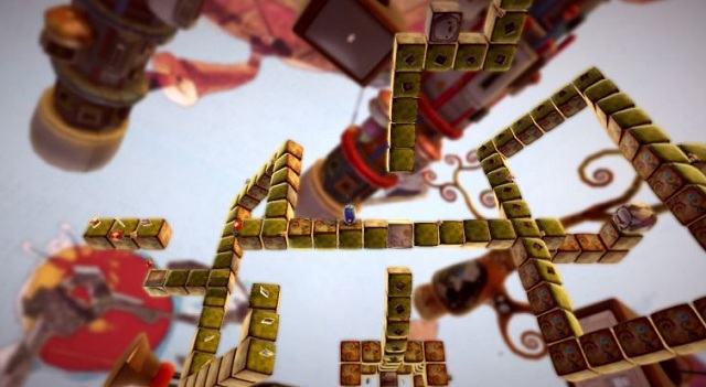 Zum Glück ist ilomilo nicht nur außen hui, sondern auch innen. Jedes Level besteht aus Würfeln, die teilweise zu sehr verzweigten Gebilden aneinandergereiht sind und frei im Raum schweben, so dass sie von jeder Seite gut einsehbar sind. Per Knopfdruck wechselt Ihr zwischen den beiden Protagonisten. Je weniger Schritte Ihr benötigt, bis sich die Freunde treffen, desto besser werdet Ihr bewertet. Reicht es zu Beginn, mit einem Würfel eine Lücke im Pfad zu füllen, fordert das Leveldesign recht schnell einiges an Hirnschmalz. Dann erstrecken sich die Wege kreuz und quer in alle Himmelsrichtungen, wachsen in die Höhe und können an bestimmten Stellen von mehreren Seiten beschritten werden.