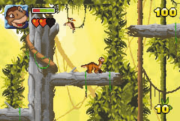 Nicht immer, aber immer öfter: Wenn Swing auf dem GBA ein Lizenzspiel rausbringt, steckt in der Regel ein Jump’n’Run dahinter – so auch bei In einem Land vor unserer Zeit. Als Zeichentrickdino wuselt Ihr durch fünf Welten, sammelt Blätter ein und weicht fiesen Urtieren aus. Die schlichte Standardformel wird immerhin dadurch aufgelockert, dass Ihr in späteren Abschnitten je nach Aufgabe zu anderen Artgenossen wechselt oder in Minispielen wie einem Simpelflipper verlorene Leben zurückgewinnt.