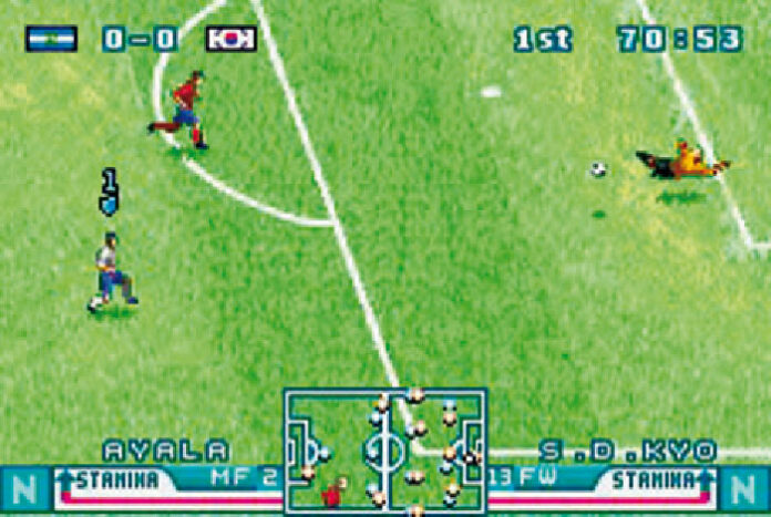 Was auf den großen Konsolenbrüdern funktioniert, kann auch für den GBA nicht schlecht sein: Nach dem Handheld-Debüt im letzten Jahr schiebt Konami nun ein aufpoliertes Update seiner Gourmet-Bolzerei hinterher. Neben den bereits aus der Vorsaison bekannten Freundschaftsmatches, Elfmeterschießen sowie einem internationalen Turnier dürft Ihr nun bei der ”Superstar”-Variante gegen elitäre Nationalteams antreten und durch Siege deren beste Ballkünstler zwangstransferieren. Besagte Mannschaften bestehen zwar nach wie vor aus kruden Fantasie-Kickern, aber dafür laufen nun insgesamt 58 Truppen in die Pixel-Stadien ein. Auf dem Platz steht Euch trotz GBA-Schrumpfkur ein reichhaltiges Bewegungs-Arsenal zur Verfügung: Via Kombination mit den beiden Schultertasten zieht Ihr scharfe Flanken in den Strafraum, schickt einen Mitspieler auf die Steilpass-Reise, spurtet dribbelnd gen gegnerisches Tor oder tretet einem attackierenden Stürmer auf die Digi-Socken.