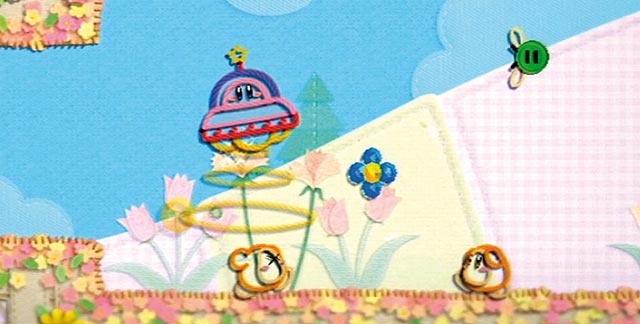Der beliebte Staubsauger ist zurück. Doch oh Schreck nach der Begegnung mit dem fadenscheinigen Gauner Yin-Yarn verliert Kirby seine wichtigste Fähigkeit: das Aufsaugen der Gegner. Weil er in Yin-Yarns wolliger Welt selbst nur noch aus Garn besteht, saust die Luft durch ihn hindurch Feinde einsaugen und ihnen die Fähigkeiten stehlen war gestern! Anstatt jedoch auf die Tränendrüse zu drücken, macht der Knuddel das Beste aus der Situation: Er freundet sich mit dem blauen Bündel Prinz Fluff an, haut seine Feinde mit einer Fadenpeitsche ins Jenseits und hüpft wie gehabt über zahllose Plattformen durch eine rein zweidimensionale Welt. Die ist aus Stoffen, Garnen, Fäden und Wolle gebaut, wurde von den Entwicklern mit unzähligen Aufnähern, Bordüren, Knöpfen, Schnüren und Reißverschlüssen veredelt und sieht von der ersten bis zur letzten Sekunde schlicht sensationell aus. Der gestochen scharfe und plastische, aber gleichermaßen verspielte und schrullige Look zaubert jedem noch so hartgesottenen HD-Junkie ein Lächeln auf die Lippen.