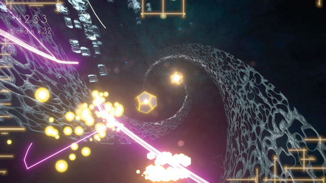 Man nehme Entwined und verfrachte es ins Weltall so einfach ließe sich Laserlife beschrieben und würde diesem weitgehend gerecht. Etwas mehr steckt dann aber doch drin: Zwar steuert Ihr in beiden Spielen unabhängig zwei Objekte (hier Leuchtlinen) und sollt damit anrauschende Objekte treffen. Bei Laserlife wird das simple Konzept aber in verschiedenen Phasen leicht variiert und erfordert teils zusätzliche Bewegungen oder das Knopfdrücken zum Rhythmus der spacigen Musik. Das spielt sich über die zwei bis drei Stunden bis zum Ende solide, bleibt aber unspektakulär von der vermeintlich tiefgründigen Story, bei der es um die philosophische Betrachtung des Lebens gehen soll, bekommt man kaum etwas mit.
