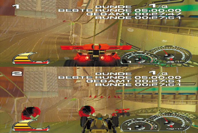 Attention to Detail, die Entwickler des futuristischen 3D-Renners Rollcage (PSone), zeigen in Drome Racers Vorliebe für bunte Klötzchen. Mit 18 Vehikeln basierend auf der ‘Lego Racers’-Reihe heizt Ihr in Fun-Racer-Manier über halsbrecherische Fantasie-Pisten und traktiert Eure Konkurrenten mit diversen Extrawaffen wie zielsuchenden Raketen, Minen oder Elektroschocker.