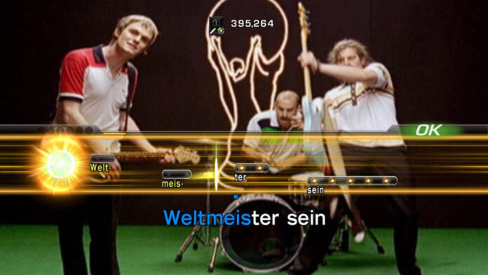 Poppig in Menügestaltung und bei Gesangseinlagen gibt sich Lips: Deutsche Partyknaller. Die Percussion-Einlagen mittels der Wireless-Mikros erzeugen leuchtend-bunte Explosionen während Eurer Darbietungen und halten auf Trab. Mit den Number One Hits erschien bereits im letzten Monat kompetenter Song-Nachschub, der inhaltliche Neuerungen missen ließ. Ähnliches Urteil fällen wir über den insgesamt dritten Lips-Ausflug, der lediglich die Liedpalette um 40 Tracks erweitert. Ansonsten bleibt das Spiel unangetastet, Ihr trällert alleine oder gegeneinander in lustigen Mehrspieler-Modi – die allerdings nur für zwei Sänger ausgelegt sind, richtige Vierspieler-Herausforderungen sind Fehlanzeige. Das Liedgut könnt Ihr übrigens nicht importieren, Ihr müsst die Lips-Discs bei eingeschalteter Konsole wechseln.