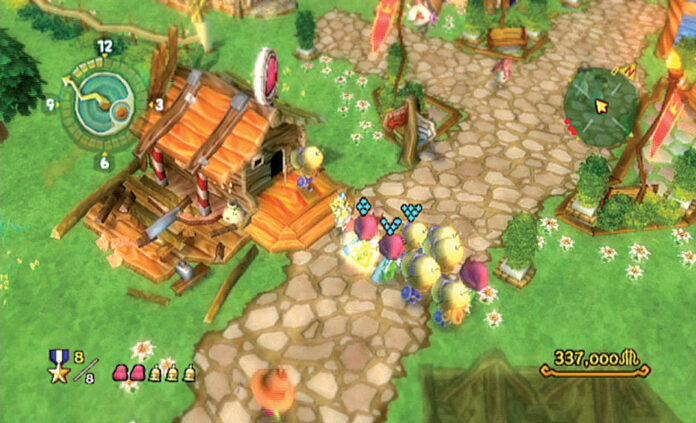Seid Ihr auf Entdeckungstour unterwegs, benötigt Ihr ein möglichst vielschichtiges Gefolge, um alle anfallenden Aufgaben zu meistern. Aber hier haben die Entwickler mitgedacht: Mittels Steuerkreuz sortiert Ihr Eure Untertanen, um sie im Notfall gleich wurfbereit zu haben. Allerdings müsst Ihr aufpassen, denn Lebensenergie steht für Euch und Eure Untertanen nur begrenzt zur Verfügung. Per B-Knopf pfeift Ihr zum Rückzug und brecht angefangene Aufgaben ab. Ruht Euch im Königspalast aus, um Euch zu regenerieren und am nächsten Tag Euer Glück zu versuchen. Daneben solltet Ihr immer ein Auge auf Euer Reich und dessen Versorgung werfen.