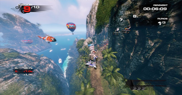 Neuer Name, gleiches Spiel? Selten wurde Software-Recycling so dreist durchgeführt wie bei Mad Riders: Wer nämlich den Anfang 2011 als naild erschienenen Offroad-Flitzer von Entwickler Techland kennt, der fragt sich, ob er in einer Zeitmaschine gelandet ist so ähnlich sind sich beide Titel. Natürlich braust Ihr in Mad Riders über neue Dschungel- und Tropenpisten, die gefühlt etwas weniger chaotisch ausfallen. Aber unterm Strich bleibt das Meiste gleich: Fahrerischer Anspruch ist außen vor, hin und wieder verliert Ihr durch das Höllentempo beziehungsweise die eigenwillig nahe Kameraperspektive den Überblick und das Tricksystem ist ausgesprochen simpel. Wer aber eine Arcade-Raserei jenseits jeglichen Tiefgangs sucht, der liegt hier richtig.