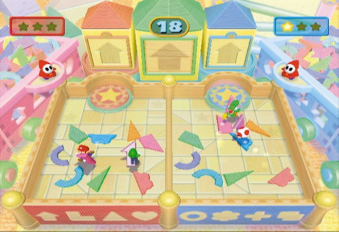 Die Spielbretter reichen von spartanisch einfach bis verschlungen komplex. Jeder Spieler würfelt einmal pro Runde eine Augenzahl von 1 bis 10 und marschiert danach auf ein Feld: Hier warten etwa Mini-Bowser oder Donkey Kong auf Euch. Zudem verschafft Ihr Euch einen Vorteil mit Kapsel-Items: Dank Pilzeinsatz würfelt Ihr zweimal und Shy Guys mopsen für Euch Münzen.