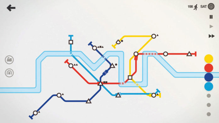 Eure Aufgabe ist es, das U-Bahn-Netz von Städten zu konstruieren – und bitte so, dass nicht das große Chaos ausbricht. Der Anfang ist noch harmlos: Auf der minimalistischen Karte finden sich drei durch Symbole markierte Stationen. Sobald Ihr mindestens zwei verbindet – wahlweise per Cursor- oder Touchscreen-Steuerung – entsteht eine (von zu Beginn maximal drei) U-Bahn-Linie und die pendelnden Züge nehmen Passagiere auf. Die sind ebenfalls kleine Symbole: So erkennt Ihr auch, wer wohin will. Langsam entfernt sich die Kamera weiter vom Geschehen und es kommen regelmäßig Stationen dazu, die eingebunden werden wollen und auch mal ein neues Zielsymbol einführen. Manchmal müsst Ihr Gewässer per Tunnel oder Brücke überqueren, die aber nur begrenzt vorrätig sind. Haltet Ihr das Geschehen am Laufen, bekommt Ihr periodisch Hilfe in Form von zusätzlich einsetzbaren Waggons und ganzen Zügen oder auch die Möglichkeit, eine ganz neue Linie einzufügen. Entscheidend ist eins: Werden die Warteschlangen in nur einer Station zu lange, kommt schon der ganze Betrieb zum Erliegen.