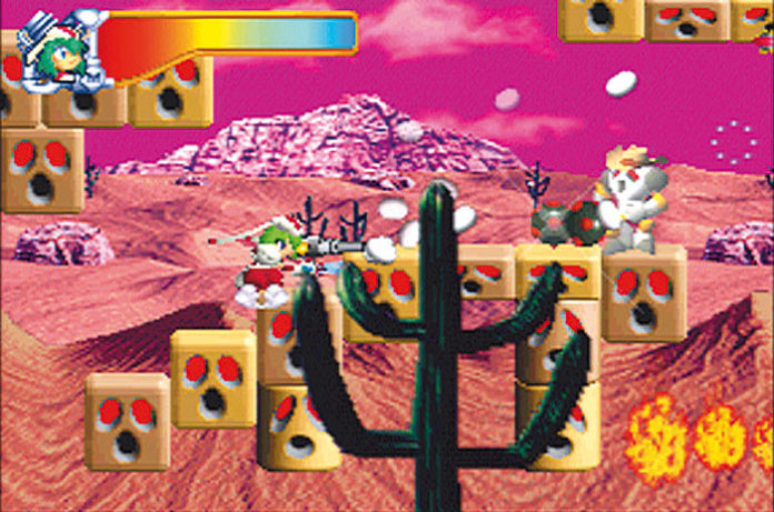 Nicht alle Nendoroaner trachten Euch nach dem Leben: Per R-Knopf sprecht Ihr mit freundlichen Aliens, die Euch bereitwillig Tips, Aufträge und Extras geben. Diese benötigt Ihr, um den leuchtenden Stern des Levelausgangs zu finden, der mit Teleporter-Rätseln, Schutzwänden und Fallen gut gesichert ist. Die finsteren Nendoroaner flitzen Euch auf Skiern über den Haufen und feuern mit Schleimkugel, Wurfstern und Raketenwerfer. Alle paar Welten hetzen sie sogar ein Mech- oder Drachenobermotz auf Euch. Dabei machen Euch Physikspielereien wie sinkende Flöße und schwankende Klettergerüste zu schaffen.