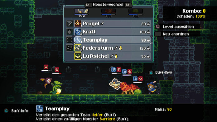 Monster wollen bekanntlich bekämpft oder gezähmt werden – um wiederum gegen andere Viecher anzutreten. Wie in Pokémon übernehmt Ihr die Rolle eines Kindes, werdet zum Monsterhüter und erfüllt Euch den Traum, ein Hütermeister zu werden. Ihr wählt ein Start-Pok…äh… -Monster und zieht hinaus in die verwinkelte, optisch eher abwechslungsarme Metroidvania-Welt. In Rundenkämpfen bezwingt Ihr in einem Dreier-Team andere Kreaturen und Champions – die zwar alleine sind, aber dafür mehr aushalten und häufiger angreifen dürfen.