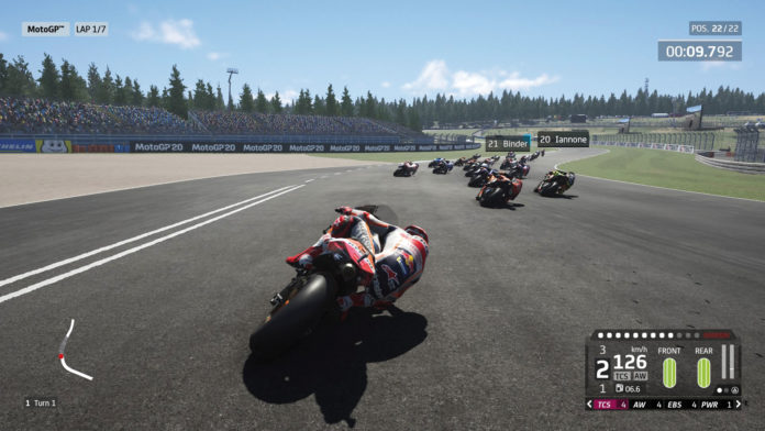 Für MotoGP 20 hat sich Milestone offenbar in der Vergangenheit umgesehen. Vieles von dem, was sich im Vergleich zum Vorjahr weiterentwickelt hat, gab es so oder ähnlich nämlich schon einmal im Jahr 2017: Nun haben wir die Wahl, wie damals mit mehr als 30 Bildern pro Sekunde Gas zu geben – zumindest auf PS4 und Xbox One. Dort könnt Ihr auf Bildqualität oder Performance setzten, letztere Variante hält die angepeilten geschmeidigen 60 fps auch weitgehend: Lediglich in den unteren Rennklassen, bei denen deutlich mehr Zweiräder in den Rennen antreten, kann es im Pulk ruckeln. In der MotoGP-Kategorie gibt es dieses Problem nicht, dafür sind die PS-Monster selbst bei aktivierten Fahrhilfen nur mit viel Übung zu zügeln. Simulation wird hier großgeschrieben, dazu gehören nun auch Aspekte wie unterschiedliche Reifenabnutzung, simulierter Spritverbrauch und detailliertere Setup-Einstellungen – Tutorials hat man dafür aber unsinnigerweise nicht im Angebot.