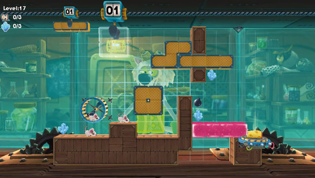 bwohl der Name an MMOs oder Voxelwelten denken lässt, entpuppt sich MouseCraft als Kombination zweier klassischer Geschicklichkeitsknobler. Als Katzenwissenschaftler Schrödinger lotst Ihr ein herumwuselndes Mäuse-Trio 80 Levels lang an allerlei Gefahren vorbei Richtung Ausgang Lemmings lässt grüßen. Ihr baut den Nagern Wege aus Steinen, die unverkennbar bei Tetris gemopst wurden. Die Mischung funktioniert dank griffiger Steuerung einwandfrei, trotz stetig neuer Elemente wie gefährlichen Robo-Mäusegegnern und verschiedenen Blocktypen vermisst man aber den letzten Funken Originalität. Als solide Abwechslung zum täglichen Krachbum taugt MouseCraft dennoch.